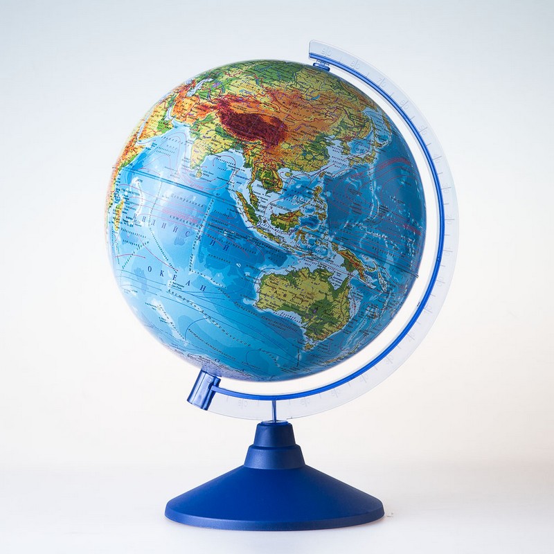 Главная > Каталог > Творчество > Канцелярские товары > ГЛОБУСЫ > Глобус 21см с физической картой Земли, голубая подставка Ке012100176