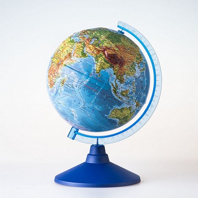 Главная > Каталог > Творчество > Канцелярские товары > ГЛОБУСЫ > Глобус 21см с физической картой Земли, Рельефный, голубая подставка Ке022100183