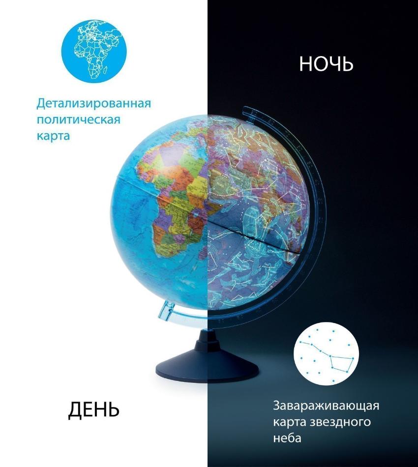 Главная > Каталог > Творчество > Канцелярские товары > ГЛОБУСЫ > Глобус 25см День и ночь с политической картой и картой звездного неба, с подсветкой Ке012500278