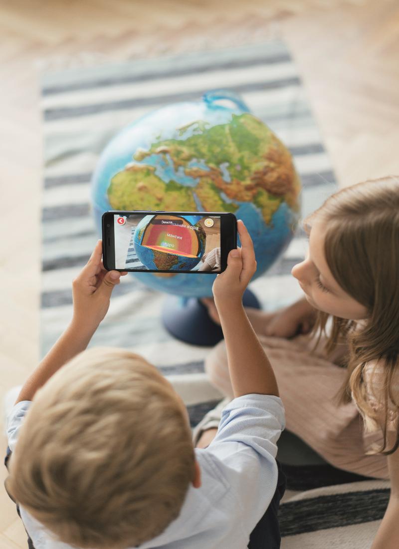 - Благодаря специальному бесплатному приложению и функции 3D AR Технология глобус "подключается" к планшету или смартфону.