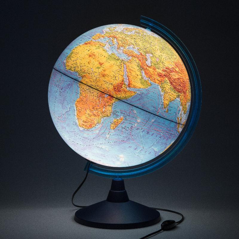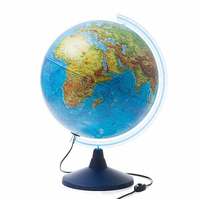 Главная > Каталог > Творчество > Канцелярские товары > ГЛОБУСЫ > Глобус 40см с физической картой Земли, голубая подставка, с подсветкой Ке014000244