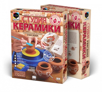 Вместе с наборами серии «СТУДИЯ КЕРАМИКИ» необычайно увлекательно и познавательно делать керамические изделия при помощи гончарного круга и затем расписывать их белилами. Самая настоящая красная глина и компактный гончарный круг с электрическим мотором создают удивительно интересный процесс и дают великолепный результат. Керамические чайные и кофейные сервизы, фужеры и стаканы, вазы, цветочные горшки, подсвечники, и многое другое можно слепить и раскрасить белилами, благодаря иллюстрированной инструкции из набора.