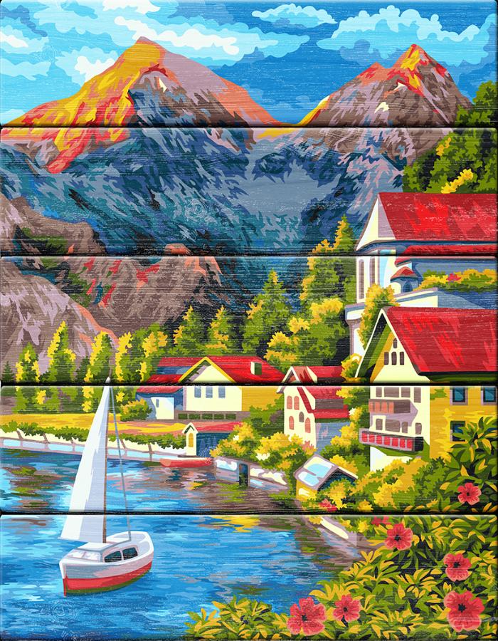 Главная > Каталог > Творчество > Картины по номерам на дереве > Городок в горах - картина по номерам на дереве PKW-1 64