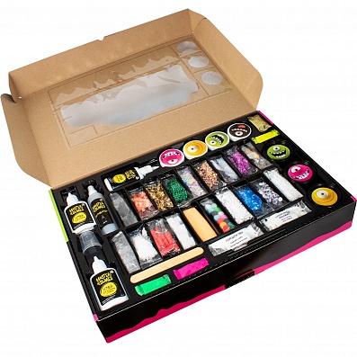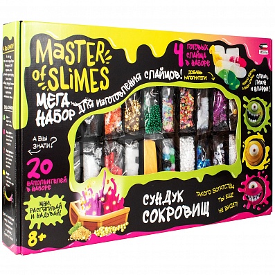 Мега-набор для создания слаймов и игры с готовыми слаймами. В наборе четыре готовых слайма, а также компоненты, из которых можно смешать еще три слайма.