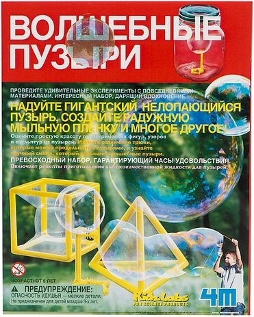 Надуйте гигантский нелопающийся пузырь, создайте радужную мыльную пленку, скульптуры из пузырей и многое другое! Оцените простую красоту геометрических фигур и узоров из пузырей. Изучите различные трюки, которые можно проделывать с пузырями, и узнайте научный смысл, который скрывают волшебные пузыри.