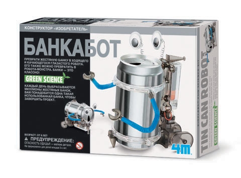 Каждый день в мире выбрасывается миллионы жестяных банок! Хотите помочь нашей планете стать чище? А в придачу сделать это в игровой форме и создать своими руками настоящего робота?! Тогда набор банкабот от бренда 4М, безусловно, для вас и ваших детей!