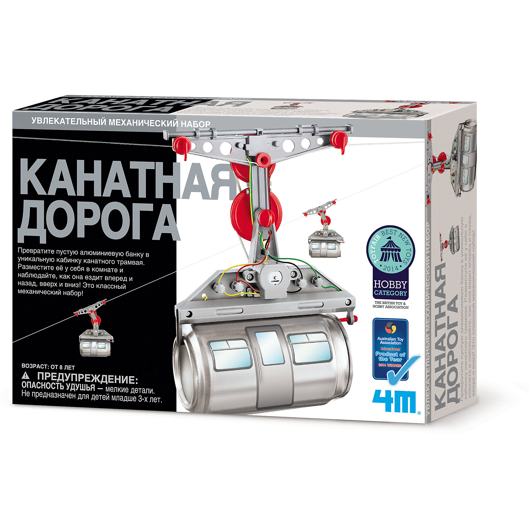 Игрушка "Канатная дорога" от бренда 4М - это увлекательный научный эксперимент, который вряд ли оставит равнодушным как детей, так и взрослых! Могли вы представить, что из пустой алюминиевой банки можно сделать кабинку для канатной дороги? А команда 4М предлагает вам создать канатную дорогу прямо у себя дома! С помощью обычной отвертки вы соберете действующий канатный трамвай, который будет крепиться между двух вертикальных поверхностей на присосках и управляться наклоном троса "вверх-вниз".