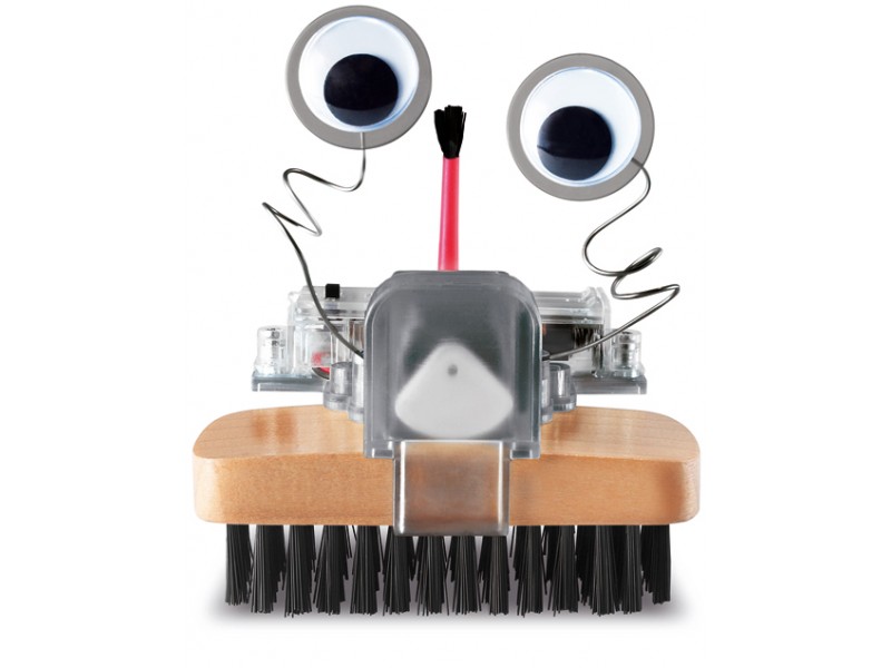 Батареи вырабатывают электричество для мотора, который вращает ротор на высокой скорости. Центр тяжести ротора смещен в сторону — он находится не на одной линии с осью мотора. Когда ротор вращается, он вынуждает робота вибрировать из стороны в сторону и вверх-вниз. Вибрации заставляют щетки подпрыгивать (отрываться и снова опускаться на поверхность) с высокой частотой. Когда большая щетка опускается после каждой вибрации, ее щетинки изгибаются, слегка толкая робота в ту же сторону, куда наклонена щетка. Когда щетка подпрыгивает, щетинки выпрямляются. Этот процесс повторяется снова и снова, заставляя щеткоробота двигаться.