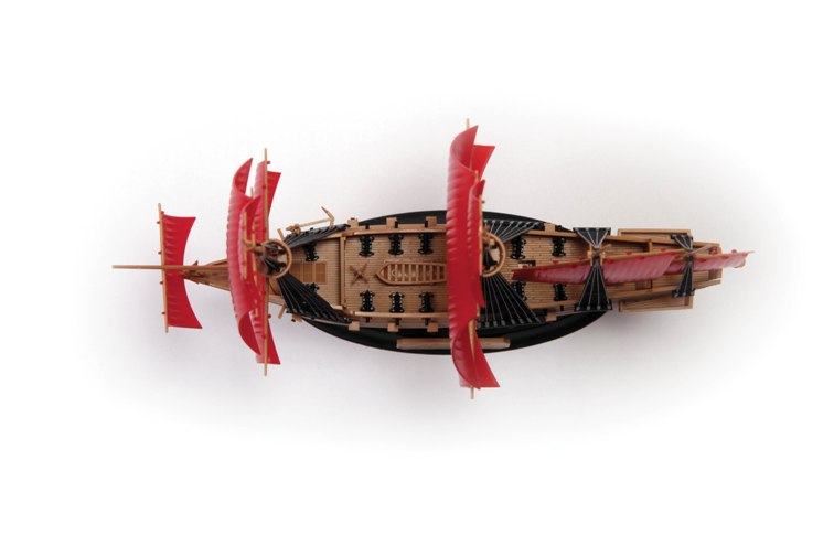 Набор деталей из пластмассы для сборки одной модели корабля.