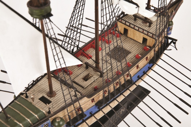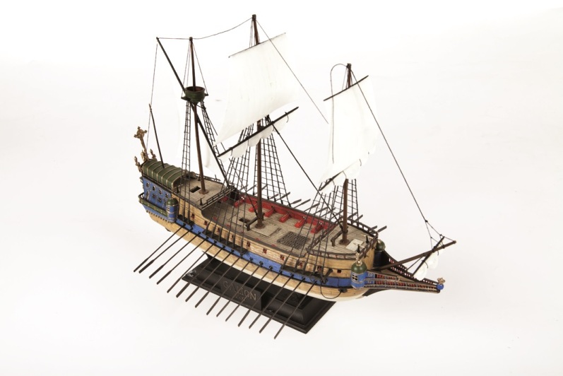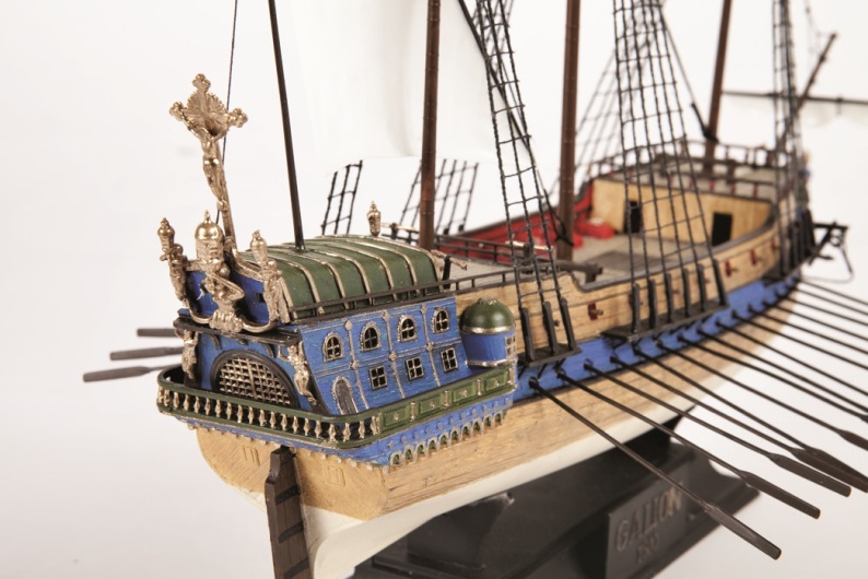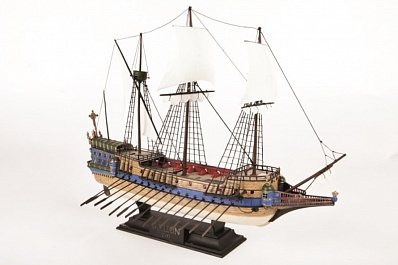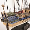 Историческая справка: Испанцы использовали тяжеловооруженные галеоны для перевозки больших грузов на дальние расстояния. Каждый год один или два манильских галеона перевозили ценные восточные товары из Филиппин в Акапулько (Мексика). Ежегодно Казначейский флот вывозил перуанские и мексиканские ценности из Карибского моря в Испанию. Отсюда и произошло прозвище подобных кораблей - "Золотой". Модель красивого испанского галеона.