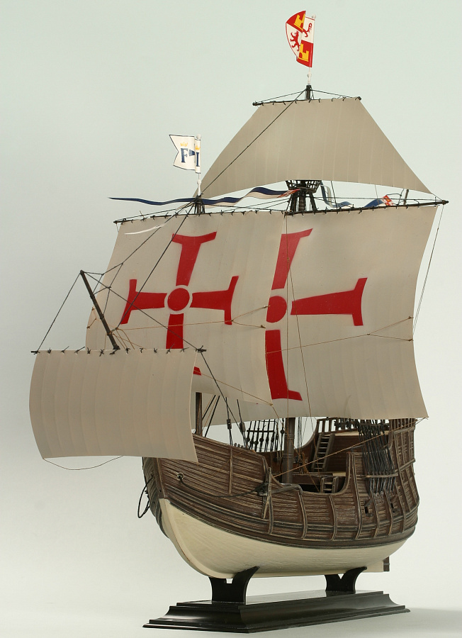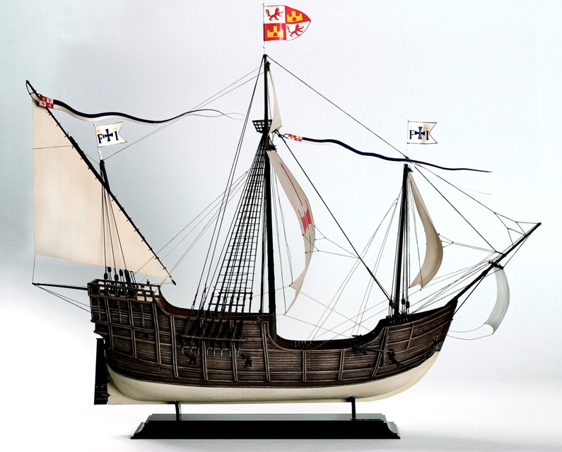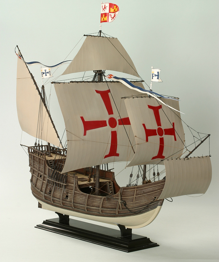 Санта-Мария' - флагманский корабль великого первооткрывателя является, наверное, самым знаменитым парусным судном эпохи Великих географических открытий. Вооружение корабля составляли пушки (четыре 20-фунтовые, шесть 12-фунтовых, восемь 6-фунтовых), также нескольких шпрингалов и мортир и около сотни тяжелых мушкетов.
