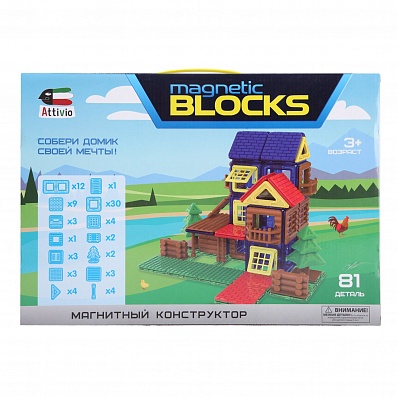 Главная > Каталог > Конструкторы > Магнитные конструкторы > Магнитный конструктор Attivio Woody 81 деталь HB03007