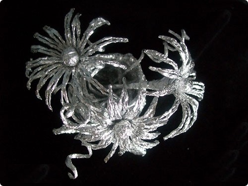 Моделирование из фольги - увлекательное занятие для девочек от 8 лет и старше. Сначала фольга нарезается на полоски, которые затем скручиваются в тонкие гибкие проволочки. Их фактурная сверкающая поверхность создает потрясающий декоративный эффект, благодаря которому изделия становятся похожими на настоящие ювелирные украшения. А простые приемы плетения и пластичность материала позволяют создавать любые формы, открывая неограниченные просторы для творчества. Перед вами открываются новые дизайнерские горизонты: украшайте уже готовыми композициями светильники, цветочные горшки, веранды, беседки, открытые лоджии, кухню и ванную комнату - везде, где другие украшения быстро приходили в негодность, изделия из алюминиевой фольги будут долгое время радовать вас своей красотой.