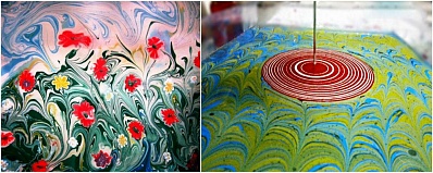На поверхность специального раствора наносили краски, а потом иглами и спицами формировали из них фантастические узоры.