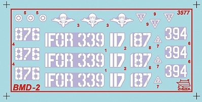Историческая справка: БМД-2 является усовершенствованным вариантом БМД-1. Выпускалась с 1985 г. На новой машине установлена авиационная пушка 2А42 калибра 30 мм, боекомплект 300 выстрелов, дальность 1500 м. Имеются два курсовых пулемета калибра 7.62 мм. Установлен противотанковый ракетный комплекс.