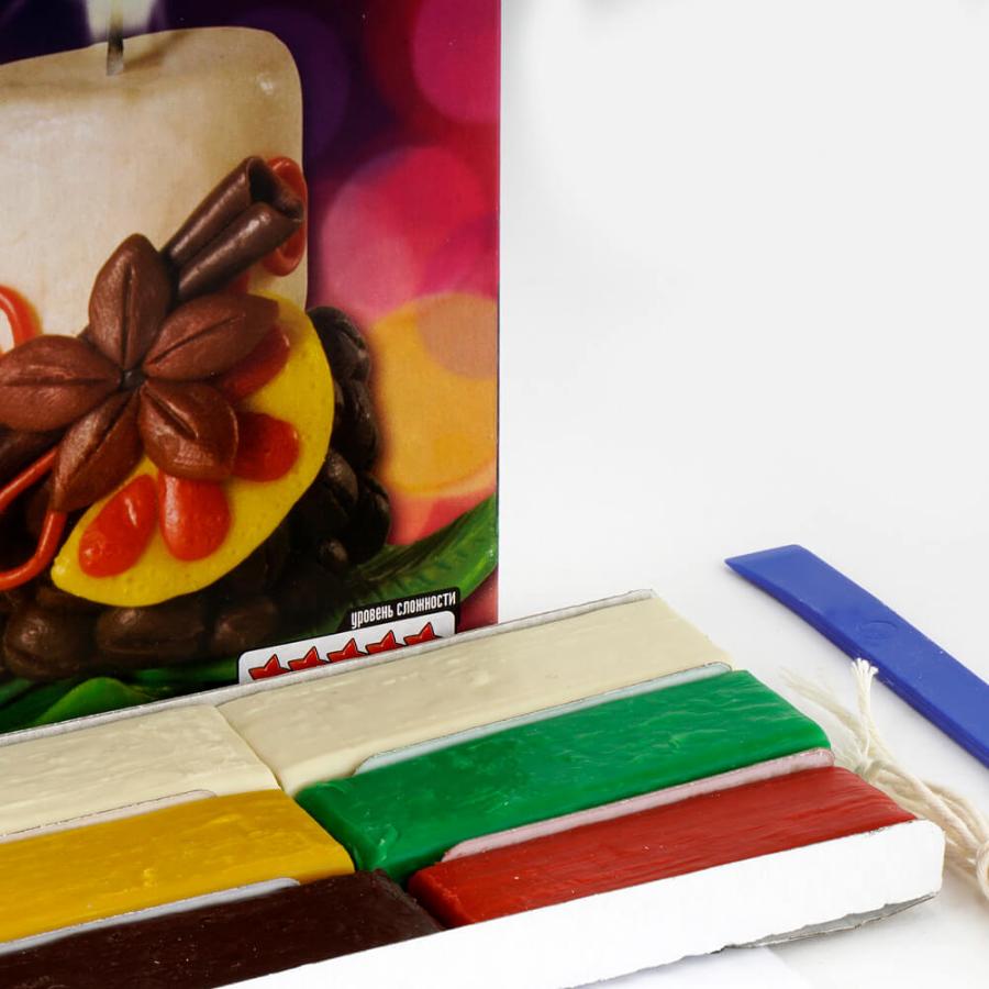 Комплектация: воск для лепки свечей, фитиль, стек, инструкция