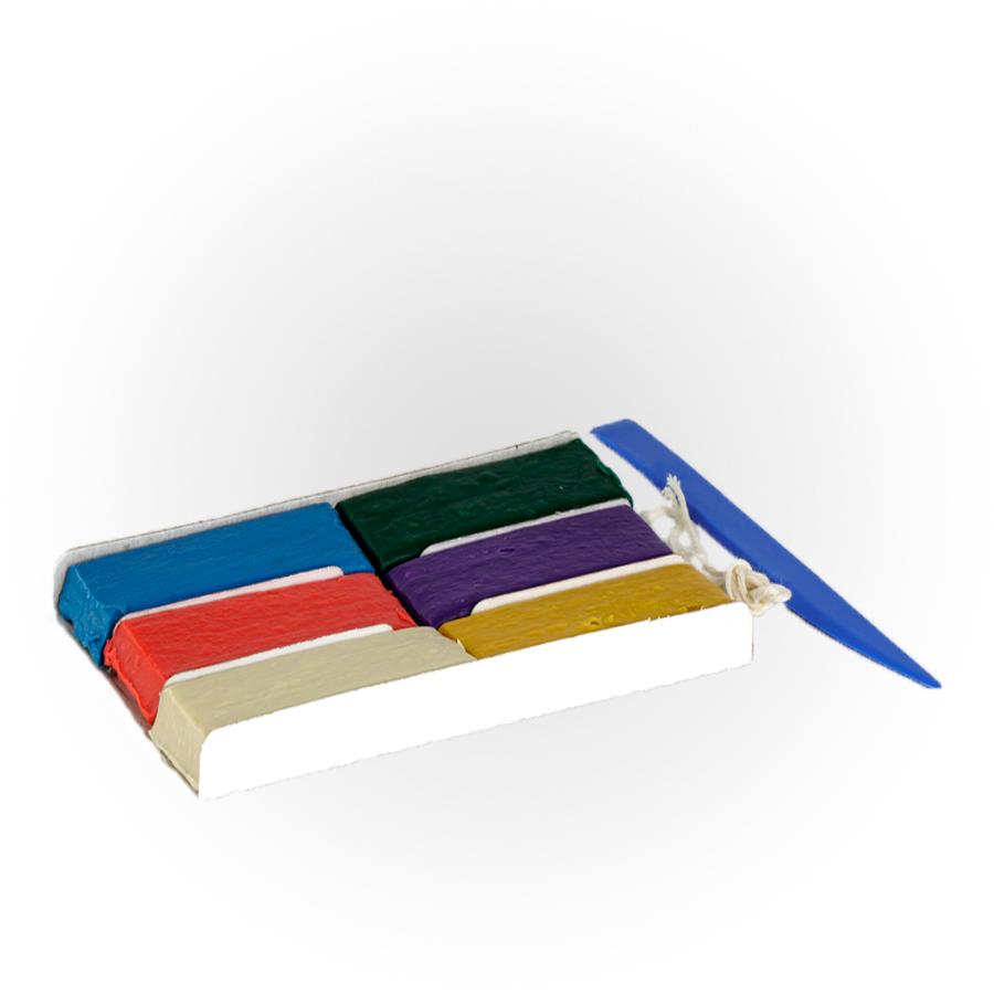 Комплектация: воск для лепки свечей, фитиль, стек, инструкция