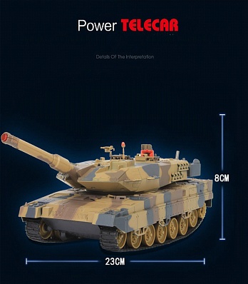 Стрельба осуществляется по кнопке с пульта управления инфракрасным лучом на расстояние до 3 м в секторе до 10 градусов. Модель имитирует выстрел пушки звуковым сигналом. Танк издает звук работы двигателя, звук выстрела орудия и попадания.
