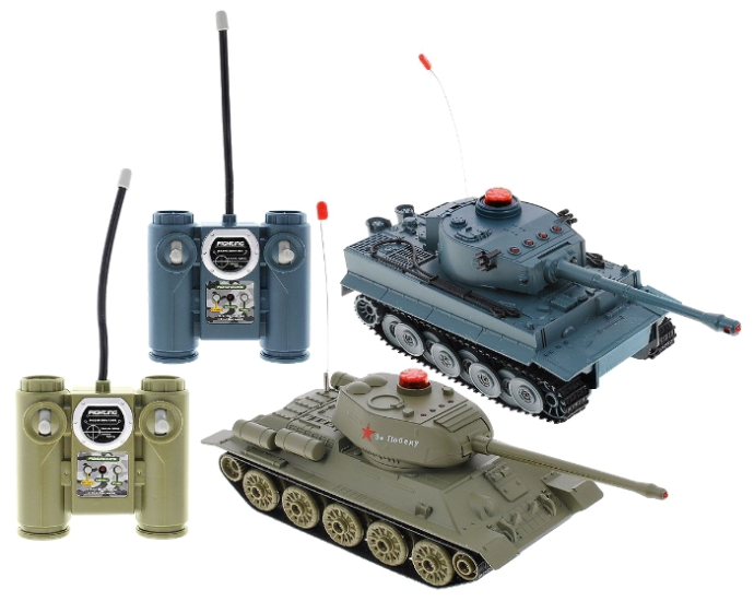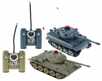 Увлекательный танковый бой никого не оставит равнодушным. В комплект входят 2 радиоуправляемые модели танков, 2 пульта ДУ, 2 аккумулятора, 2 зарядных устройства, инструкция.