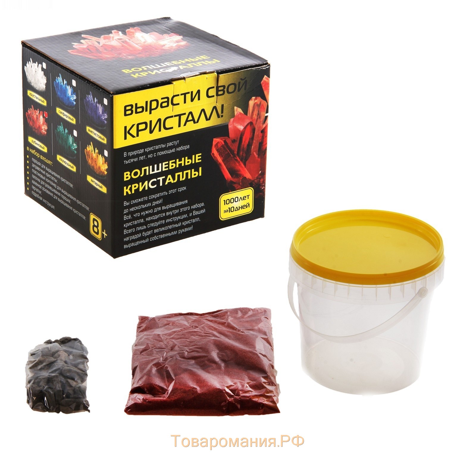 Большой кристалл красный. Он прекрасно подойдет для ребенка, который интересуется различными экспериментами уже давно, и хочет попробовать вырастить что-то невероятно!.