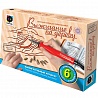 Прибор для выжигания Фантазер — отличный подарок для детей от 7 лет. Этот набор поможет выработать усидчивость, развить фантазию и получить навыки работы по дереву, которые обязательно пригодятся в будущем. К прибору прилагается 6 различных насадок, инструкция, а также две деревянные дощечки. На одной нанесено готовое изображение, на второй ничего нет. Когда ребенок освоит мастерство выжигания, то сможет самостоятельно придумать сюжет картины и воплотить его на чистой дощечке. Желательно, чтобы дети начинали обучение под присмотром взрослых.