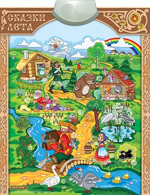 Электронный плакат «Сказки лета» (Знаток) – это «живой» сказочник, проводник в дремучие леса и тридевятые царства. На глянцевой поверхности настоящая сказочная страна, по дорожкам которой шагают любимые герои.